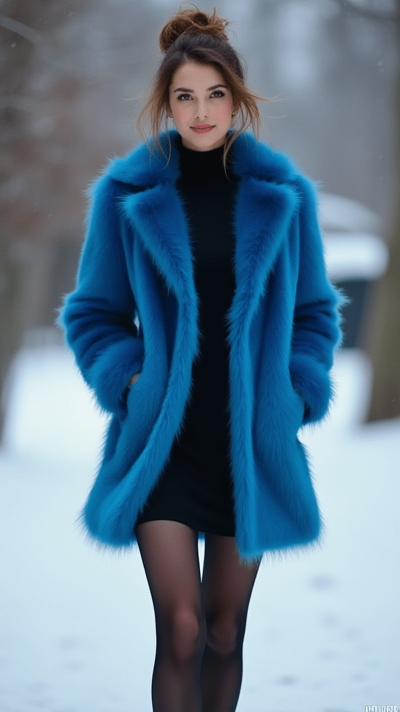 Layer a colorful faux fur coat over a classic black dress for instant glamour. It’s a cozy, eye-catching look and a conversation starter.