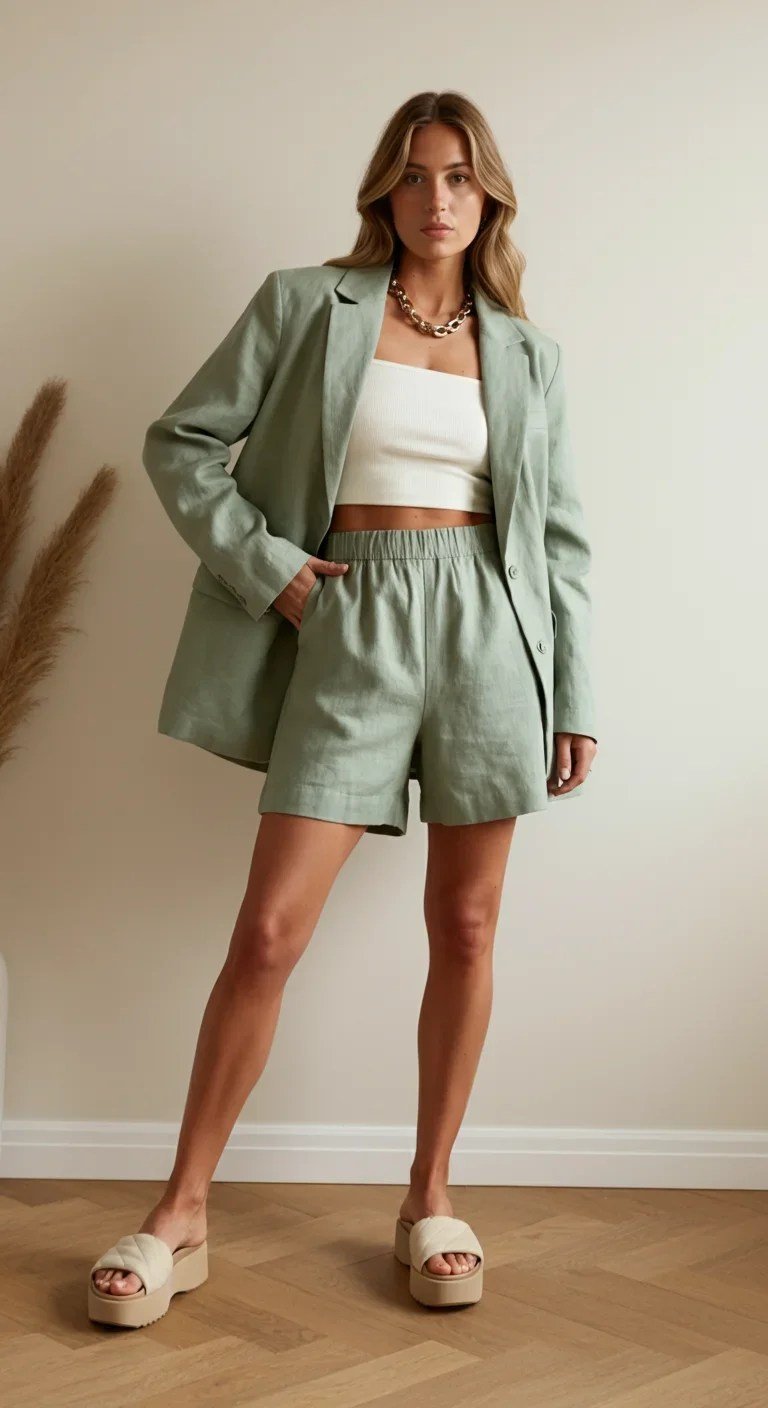 Matching sets instantly look intentional. A linen two-piece keeps you cool and feels elevated at the same time.