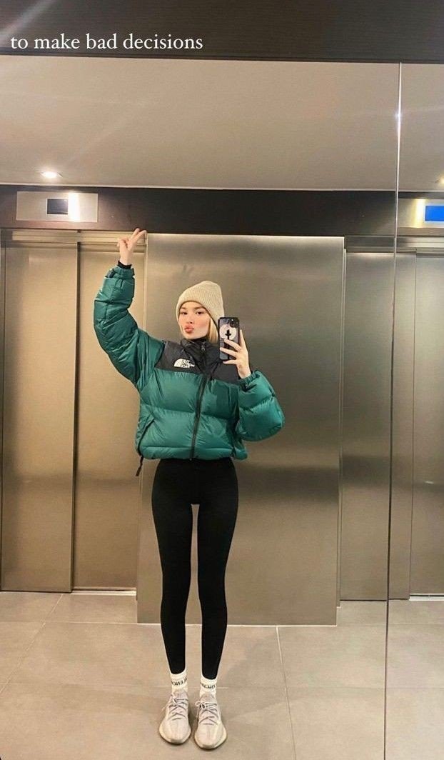 A black-on-black base with leggings and a cropped jacket makes a sleek winter outfit. Neutral boots break up the dark tones, creating balance and making the look feel styled rather than purely athletic.