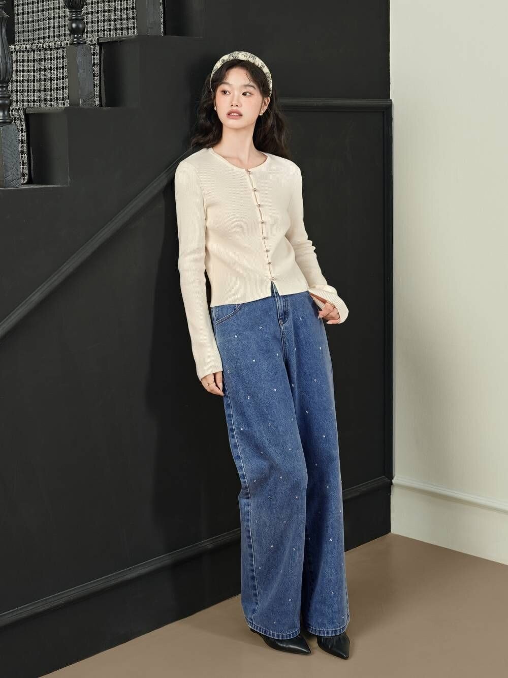 Soft cream ribbed cardigans offer warmth without bulk, paired with relaxed wide-leg jeans for a modern, comfortable silhouette. Add a beanie and pointed-toe boots to make the outfit functional for errands or casual meetups. This combination illustrates how neutral colors and simple layering can make winter dressing intentional and chic.