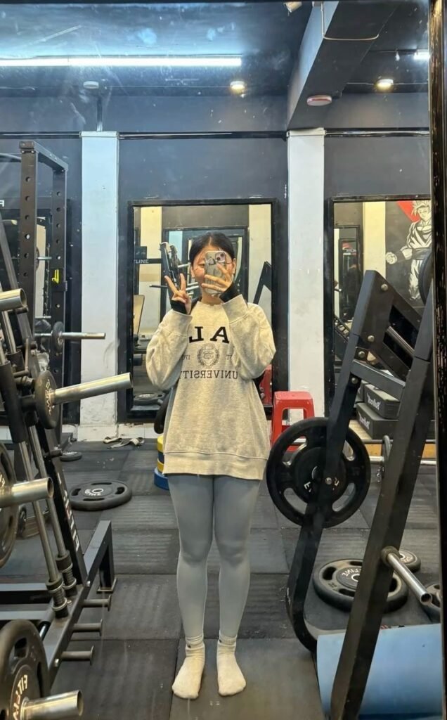 Paired with black leggings, the outfit feels balanced and versatile. It reinforces the idea that simple, comfortable basics are often the most effective way to stay consistent with winter workouts.