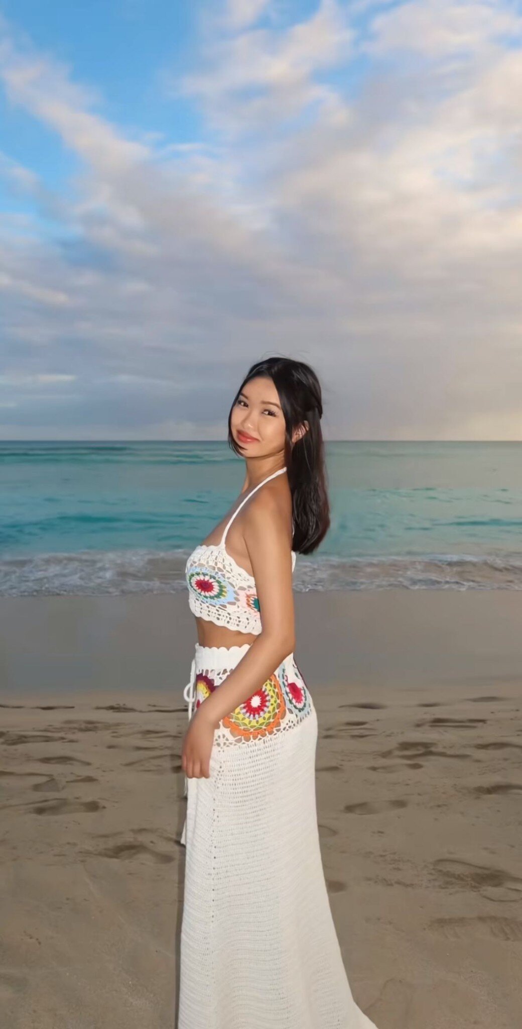 Crochet textures bring a breezy, bohemian charm that feels perfectly suited to seaside weather. A matching crop top and skirt with subtle color accents add personality while maintaining breathability. This outfit blends comfort with statement style, ideal for both daytime lounging and beachfront dining.