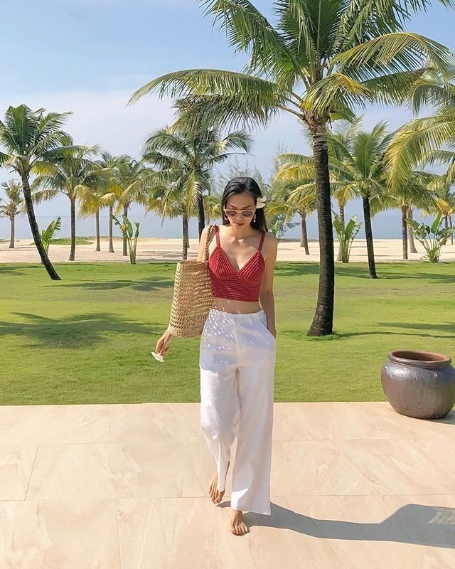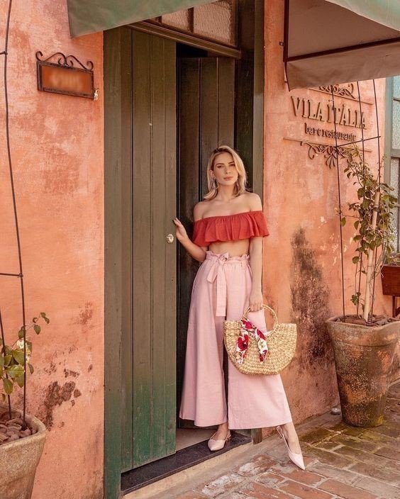 Bright color on top paired with breathable white linen trousers creates a striking yet practical summer outfit. The relaxed pants keep movement easy, while the bold top adds visual interest. This look is ideal for beach restaurants, coastal shopping, or sunset gatherings.