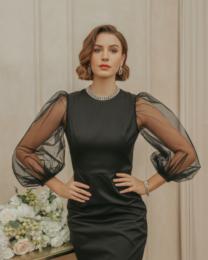Elegant Black Dress with Sheer Sleeves