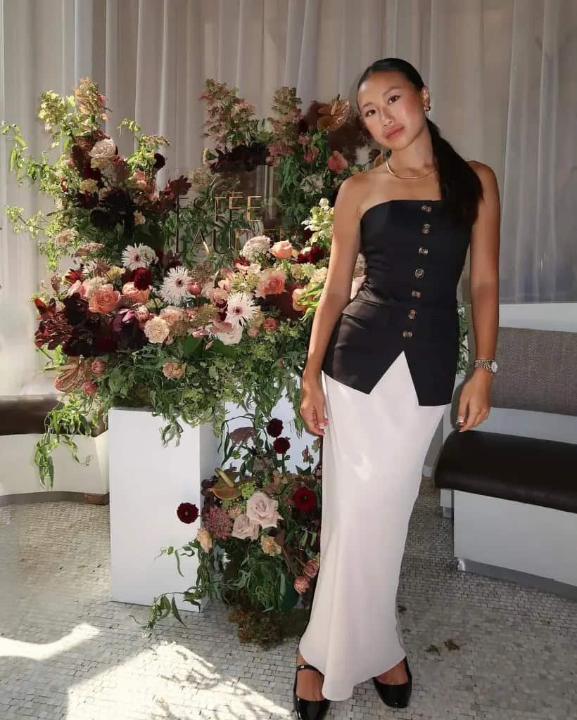 Add nude heels and delicate jewelry, and you’ll have a birthday dinner look that feels light, romantic, and effortlessly pretty.