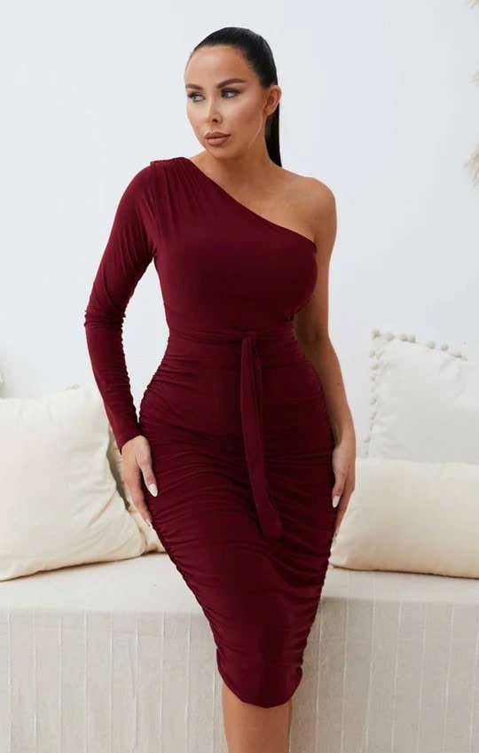 Burgundy One-Shoulder Bodycon Dress