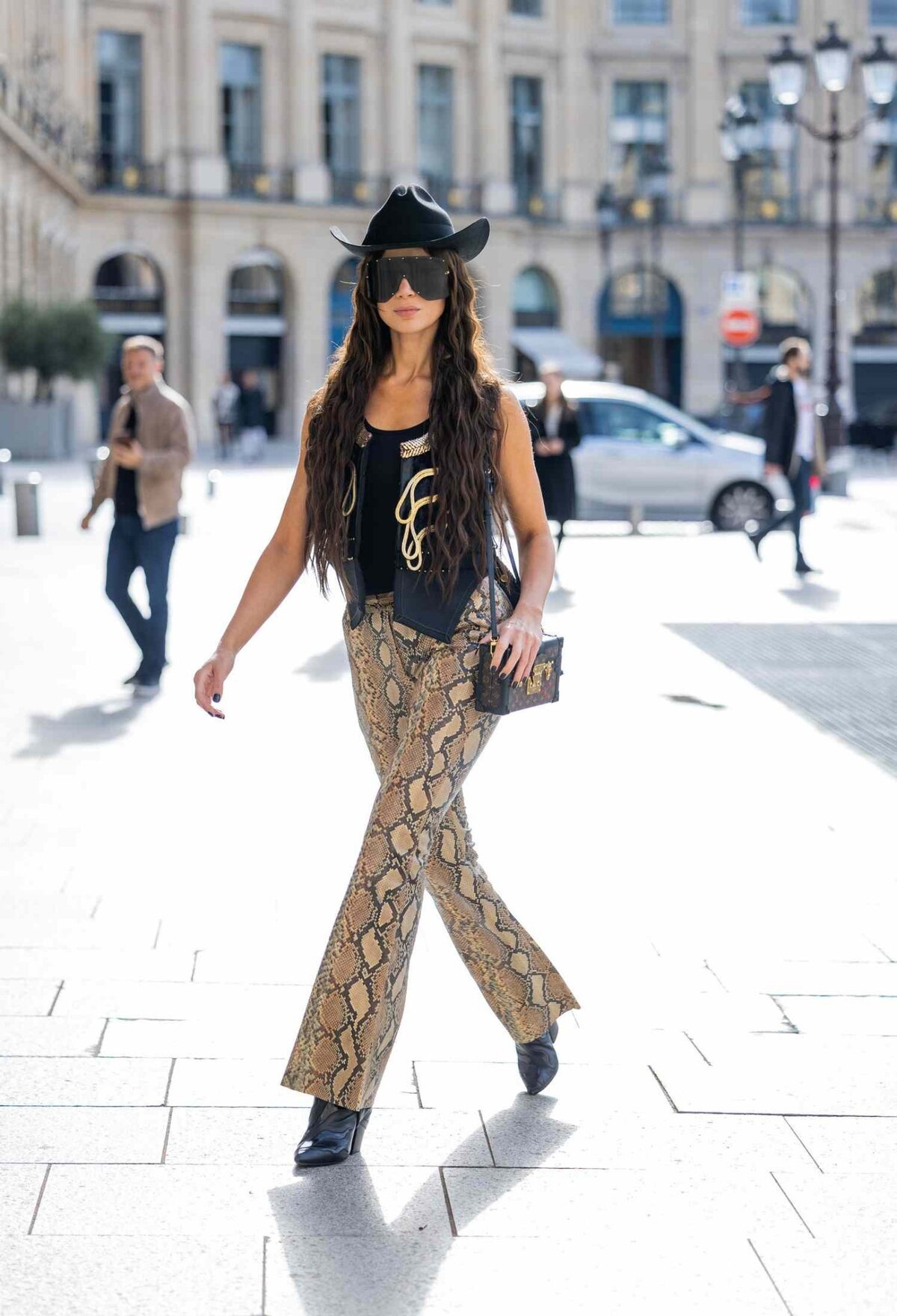 A cowboy hat, dark sunglasses, and Chelsea boots complete the rebellious concert-ready vibe.