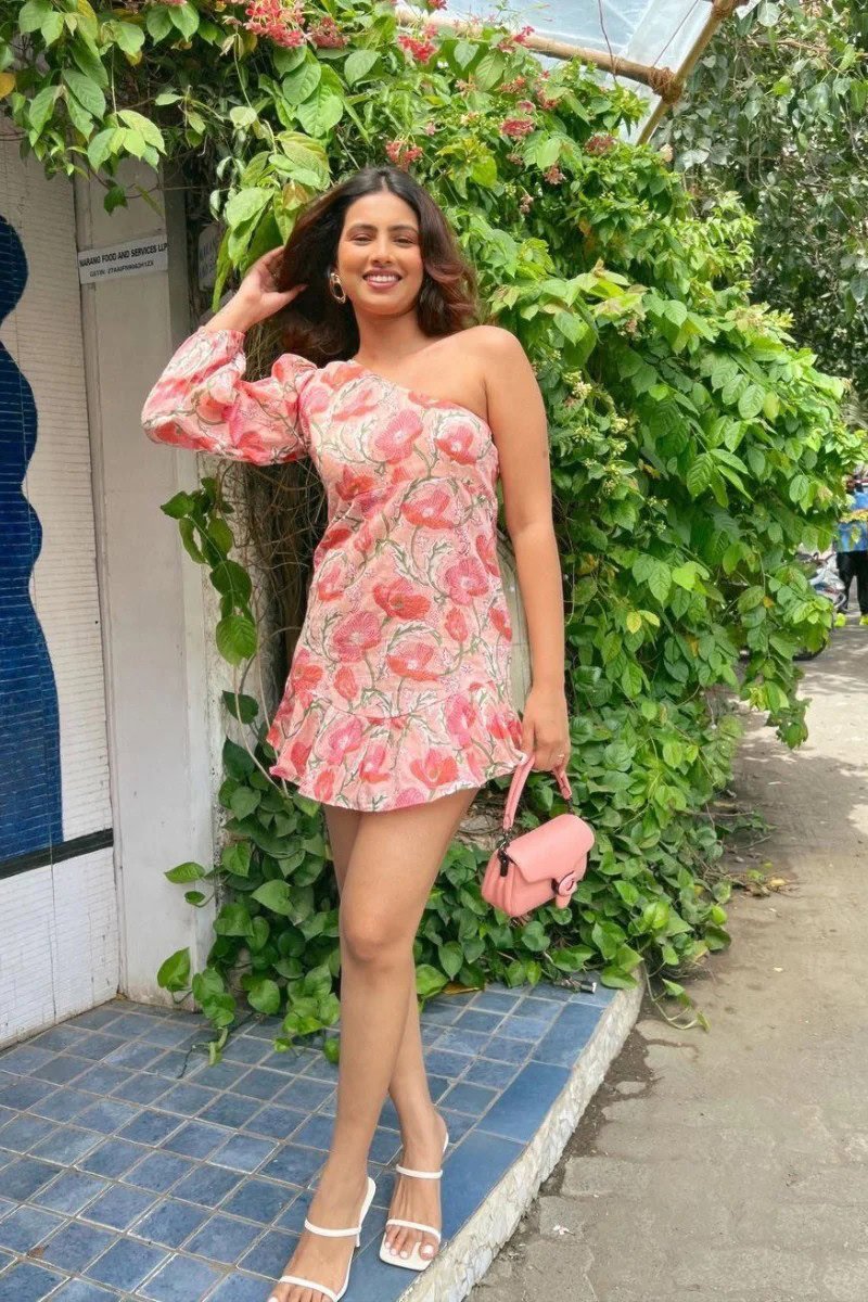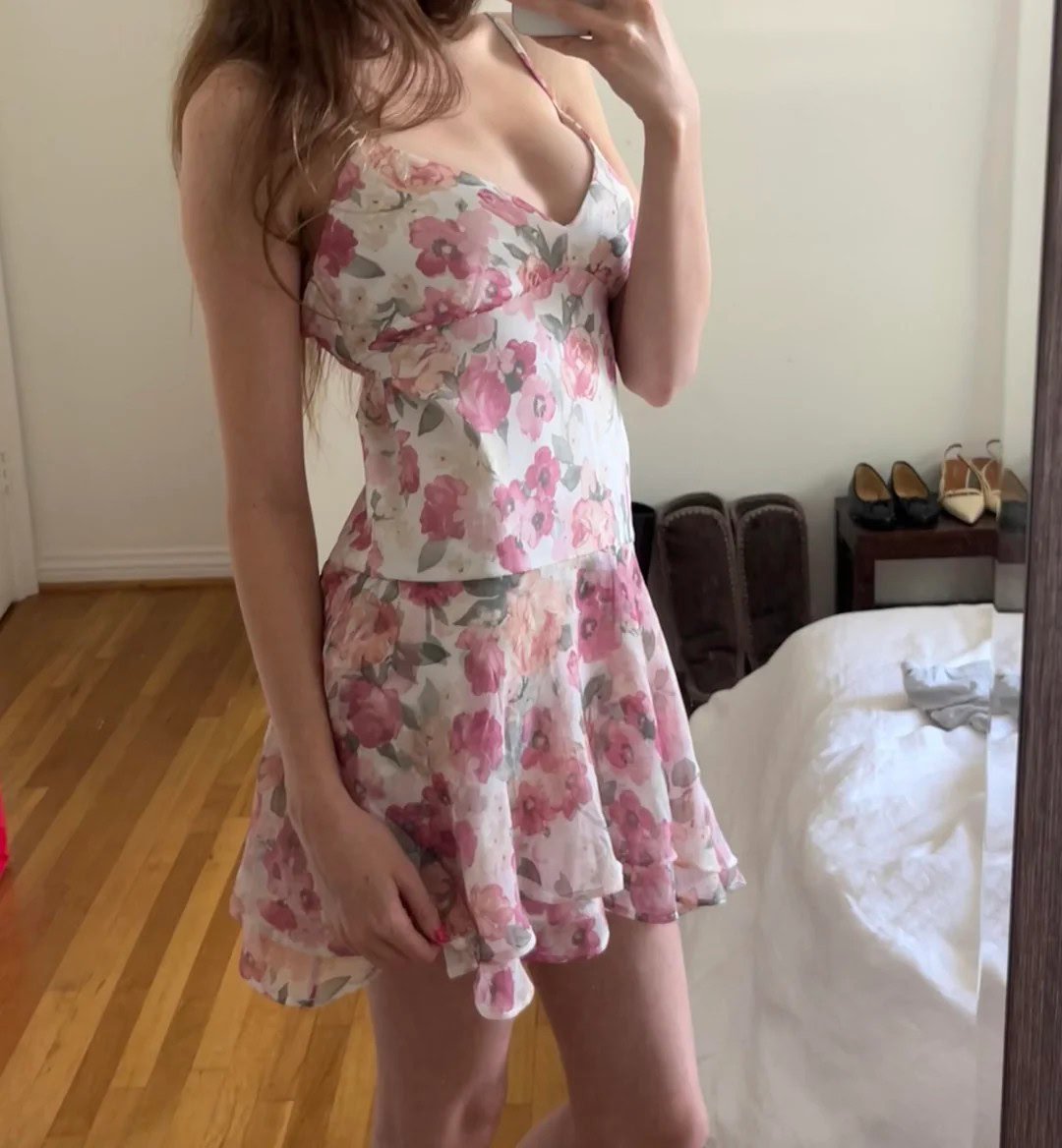 Floral prints soften the overall look, making the dress perfect for romantic dinners or evening gatherings. Paired with simple heels and minimal jewelry, it becomes an elegant yet comfortable option for summer events.