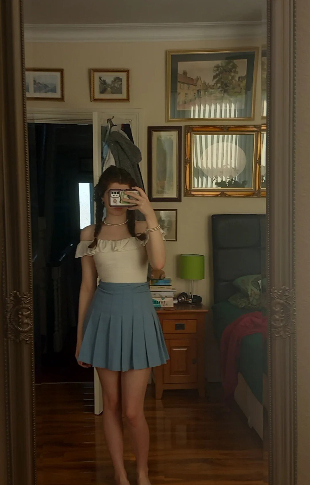 This type of dress pairs beautifully with simple white sneakers for a relaxed daytime outfit. For a slightly more polished look, loafers or sandals can easily elevate the style while keeping the overall aesthetic soft and feminine.